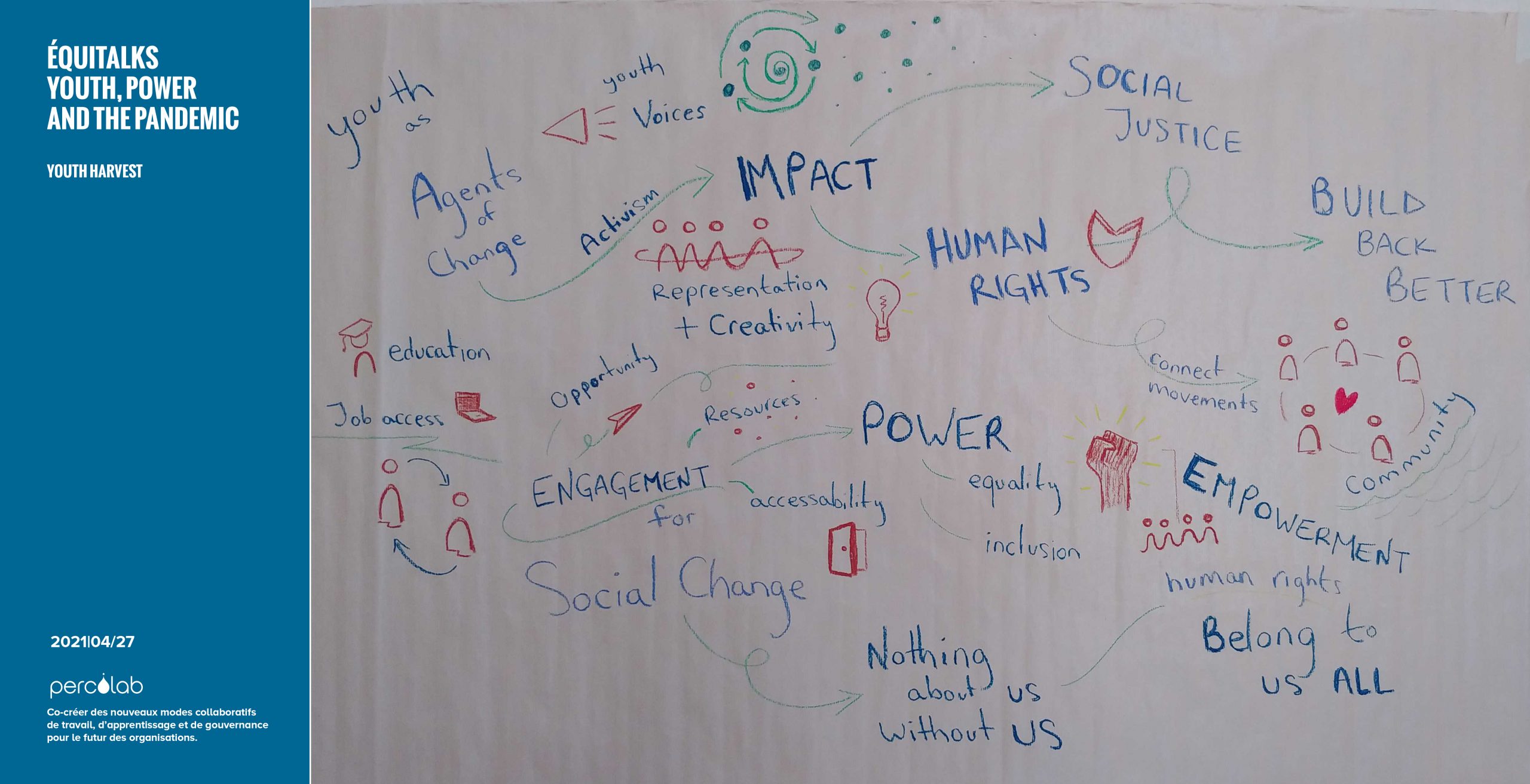 The event also allowed young people to “harvest” the ideas of these discussions through creative means and share them at the end of the event. Here’s what was presented: