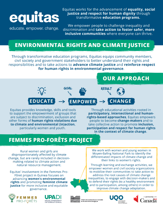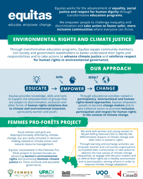In Guinea, women and girls are disproportionately affected by the effects of climate change but are rarely included in decision-making related to climate action and natural resource management. Our work in Guinea focuses on promoting women’s environmental rights and feminist climate justice for inclusive and equitable environmental governance through the Femmes Pro-Forêts: climate change adaptation in the Moyen-Bafing National Park project.