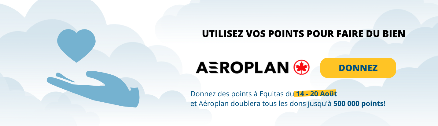 Avec notre campagne Aéroplan, si vous faites don de vos points à Equitas entre le 14 et le 20 août, Aéroplan égalera tous les points donnés !