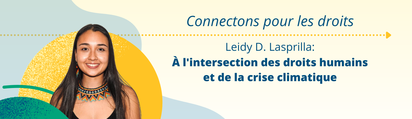 Leidy D. Lasprilla est une activiste sociale, défenseuse des droits humains et diplômée en biologie. Elle est présentement responsable de l’environnement chez Artex Social, dans la ville de Palmira en Colombie, où elle enseigne et renforce les compétences de leadership des jeunes pour agir face aux enjeux climatiques. Elle a décidé de participer à Connectons pour les droits, une formation virtuelle d’Equitas sur les droits humains, afin d’élargir ses connaissances et d’accroître l’impact de son travail.