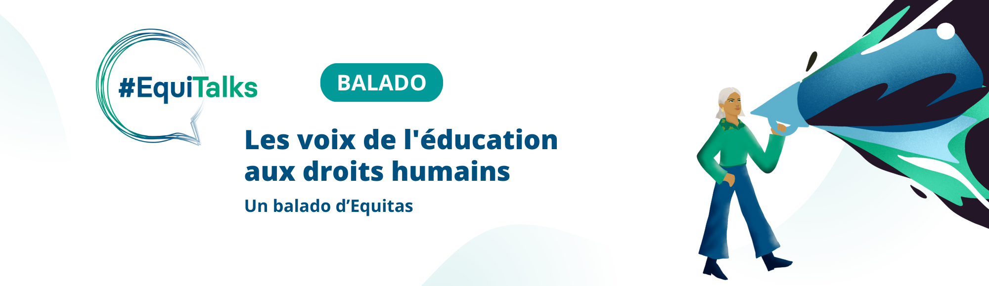 #EquiTalks : Les voix de l’éducation aux droits humains est un balado qui cherche à faire entendre la voix des personnes qui défendent les droits humains – que ce soit les personnes qui travaillent avec Equitas, des partenaires au Canada et dans le monde, des participant.e.s à nos programmes de formations sur les droits humains ou peut-être même vous un jour. Nous croyons qu’il est important de partager des idées sur les droits humains et d’apprendre les un.e.s des autres pour faire progresser l’égalité et la justice sociale – nous vous invitons à nous rejoindre dans cette aventure.