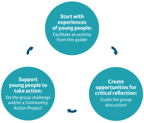 Our educational approach is grounded in an intersectional and children’s rights-based approach (CRBA) and the belief that every human being, by virtue of being human, is a holder of rights and that all human brings should have equal opportunities to realize their full potential. CRBA promotes non-discrimination and equality and gives particular attention to young people who face the most barriers to participation.